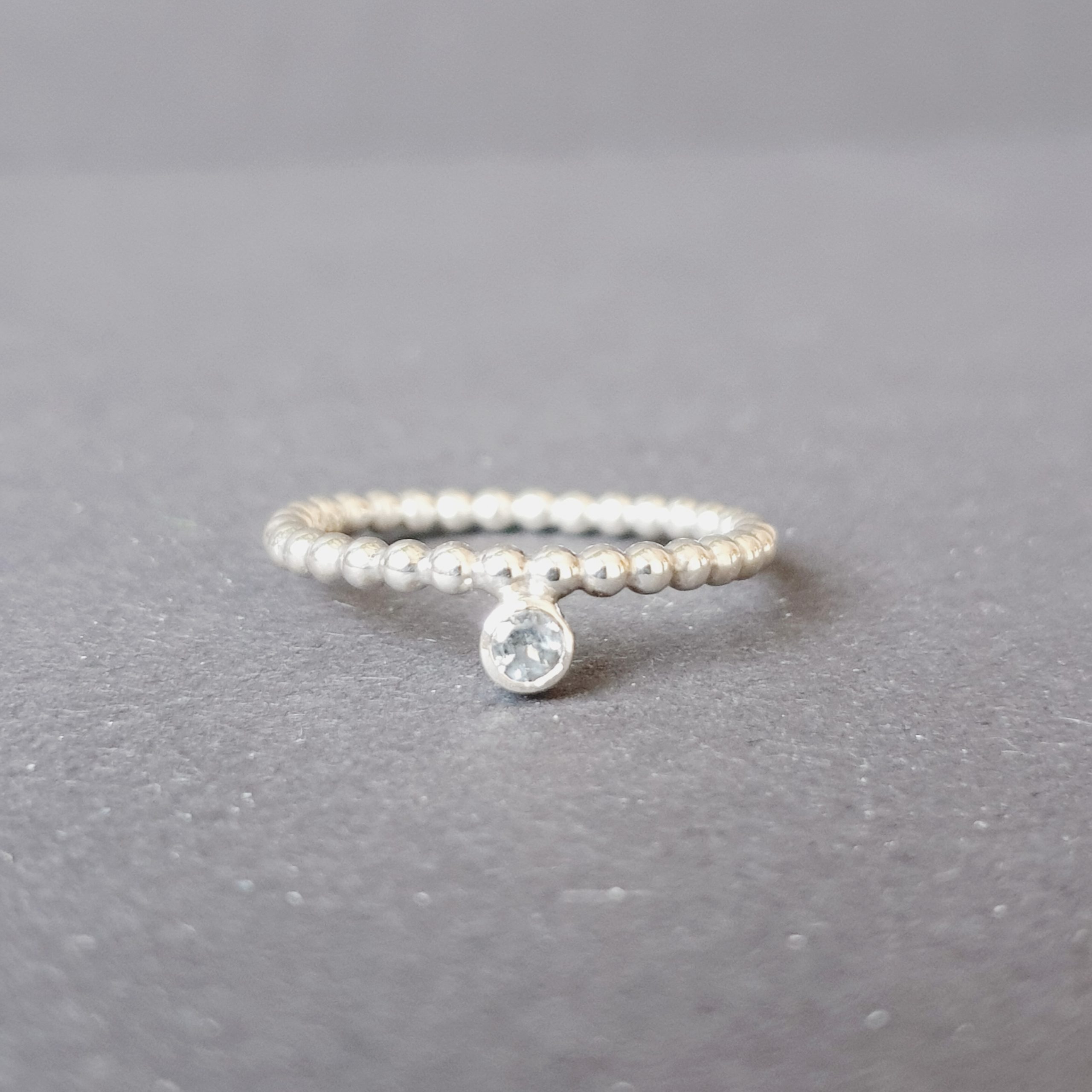 Perlring aus Silber mit einem einseitig angebrachten Blautopas.